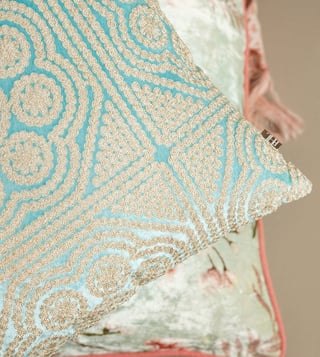 Add a touch of elegance to your home decor with this beautiful . The blue cotton embroidery cushion cover is perfect for any occasion, such as New Year, Diwali, Mother's Day, Wedding, Birthday, or Anniversary. Made with a blend of cotton and viscose, it's both stylish and comfortable.'Disclaimer: All other items in the image are only for display purposes and will not be a part of the delivery content. Product colour may slightly vary due to photographic lighting sources. Country of Origin - India.