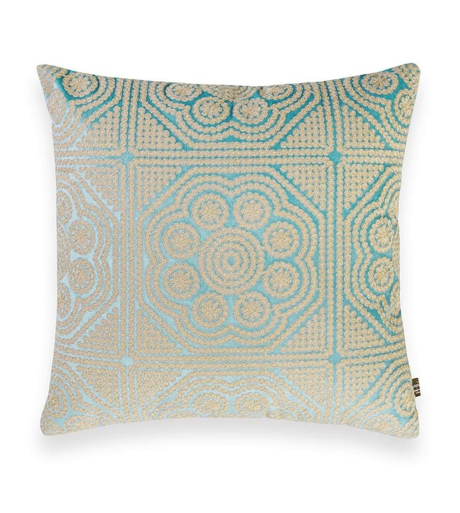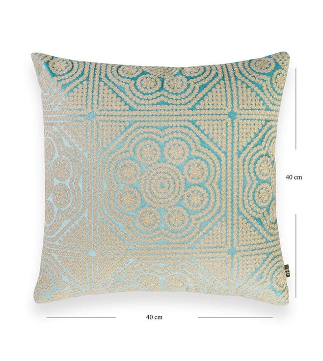 Pure Home and Living Blue Cotton Embroidery Cushion Cover