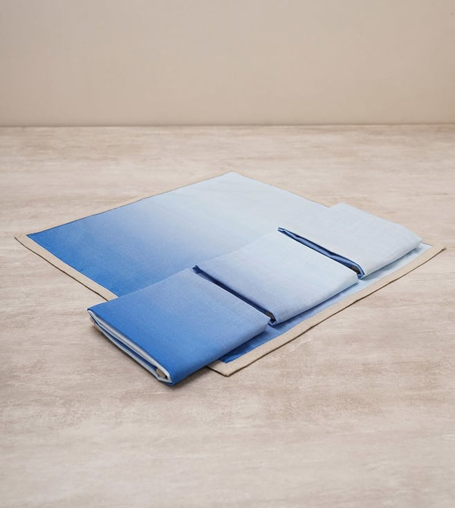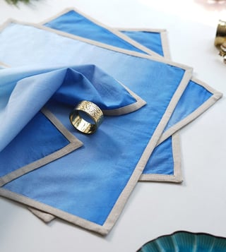 Add a touch of elegance to your dining experience with Pure Home and Living's Blue Cotton Table Napkins. Perfect for any occasion.' Disclaimer: All other items in the image are only for display purposes and will not be a part of the delivery content. Product colour may slightly vary due to photographic lighting sources. Country of Origin - India.