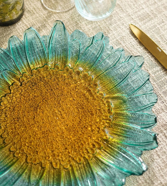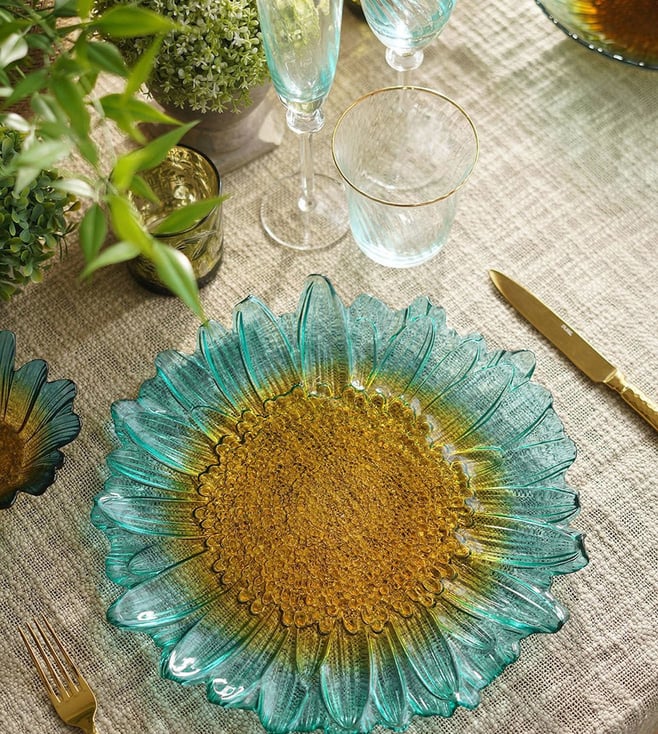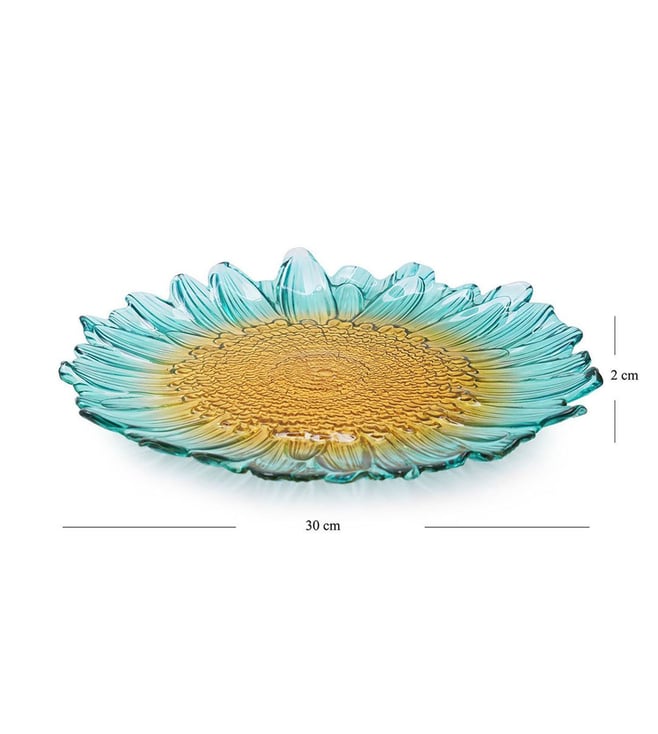 Upgrade your dinner table with these Pure Home and Living Blue Glass Dinner Plates. Perfect for special occasions like New Year, Diwali, Mother's Day, Wedding, Birthday, and Anniversary.'Disclaimer: All other items in the image are only for display purposes and will not be a part of the delivery content. Product colour may slightly vary due to photographic lighting sources. Country of Origin - India.