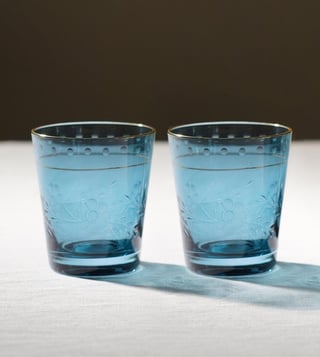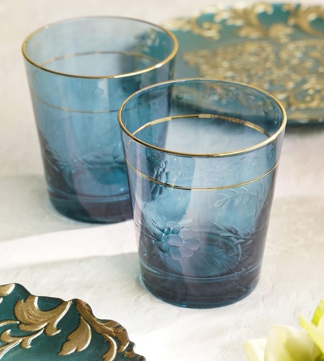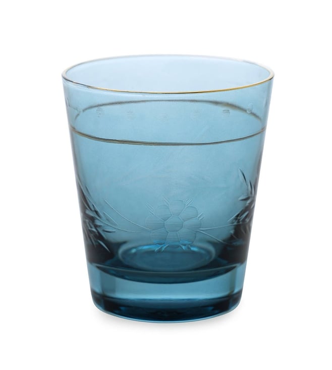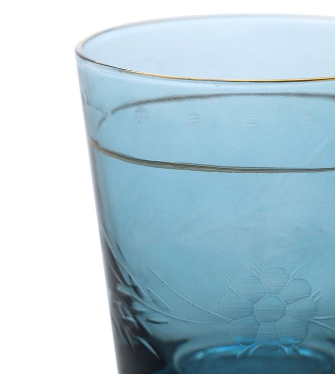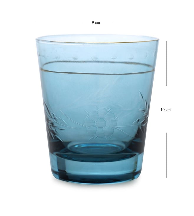 Add a touch of elegance to your home with Pure Home and Living's Blue Glass Floral Tumblers. Perfect for any occasion.' Disclaimer: All other items in the image are only for display purposes and will not be a part of the delivery content. Product colour may slightly vary due to photographic lighting sources. Country of Origin - India.