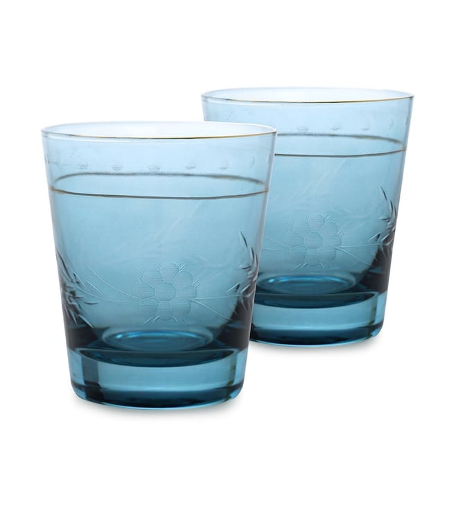 Pure Home and Living Blue Glass Floral Tumblers