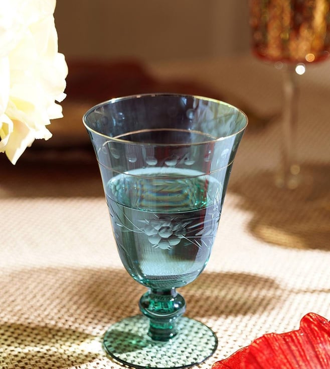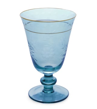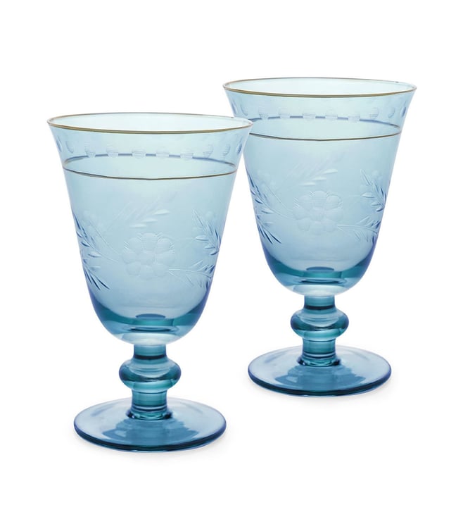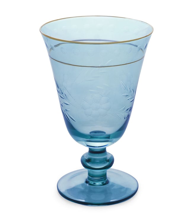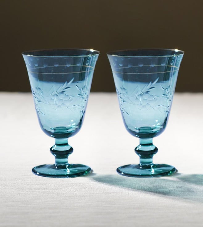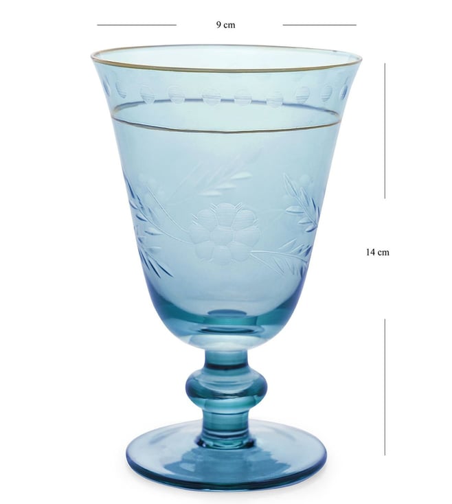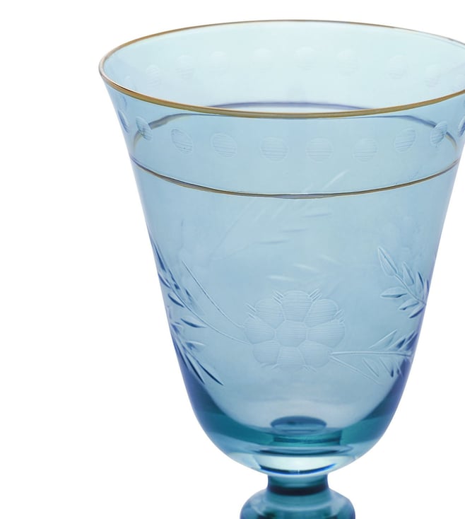 Pure Home and Living Blue Glass Floral Wine Glasses