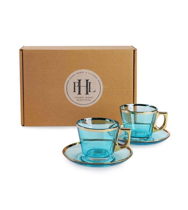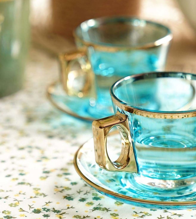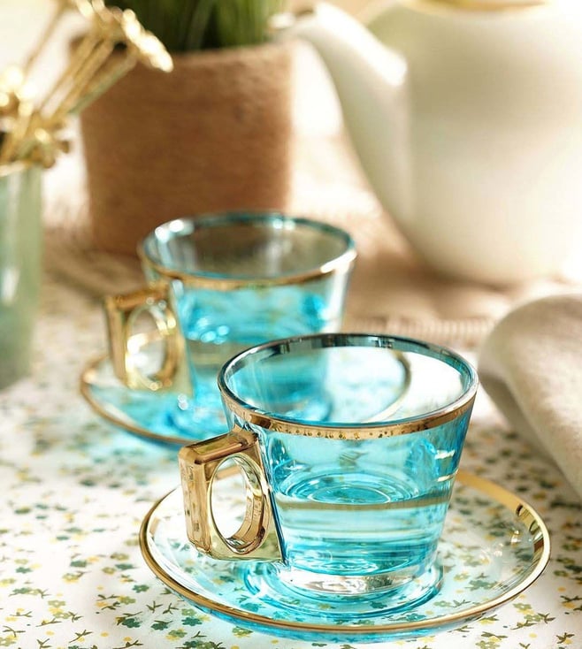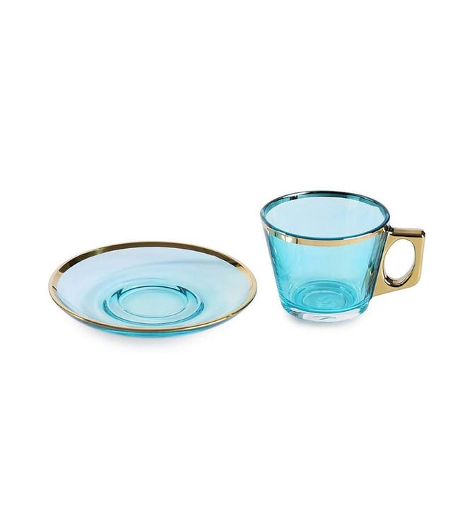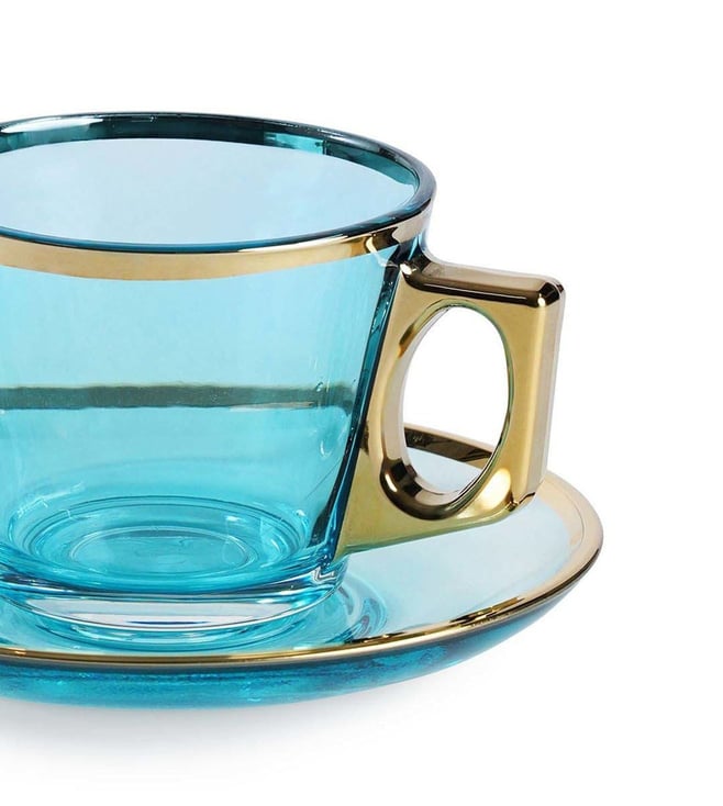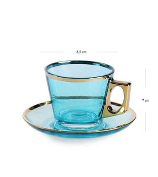 Pure Home and Living Blue Glass Gold Rim Straight Tea Cup & Saucer Set