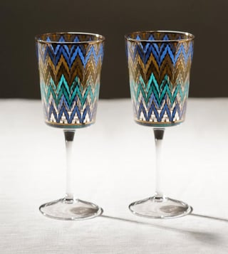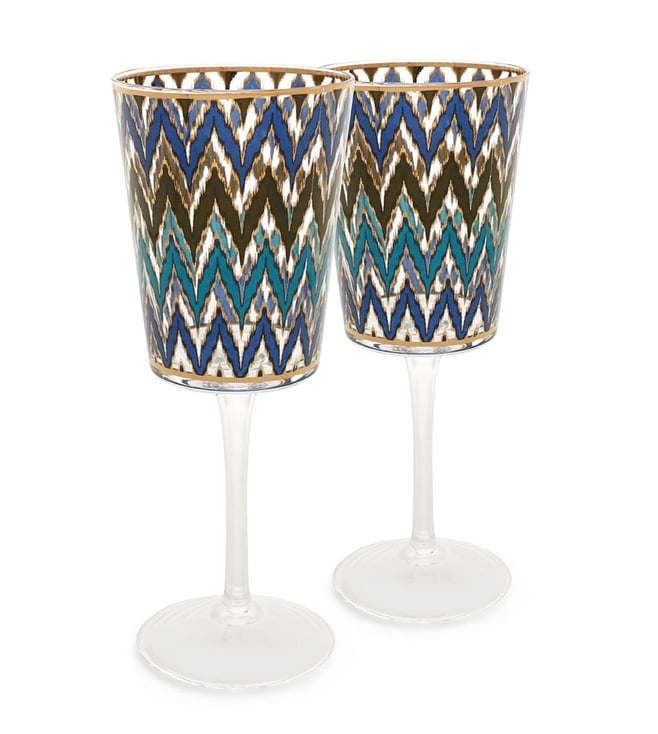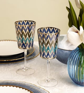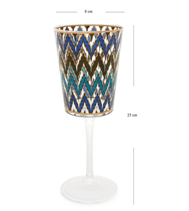Pure Home and Living Blue Glass Printed Wine Glasses