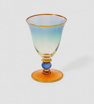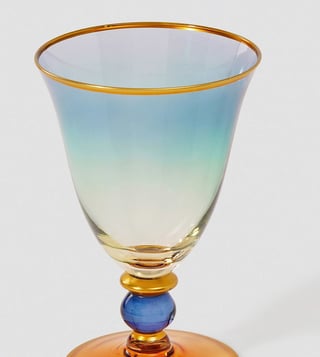 These exquisite wine glasses boast an elegant ombr fade, finished with luxurious gold detailing on the rim and base. The sculpted stem features a spherical accent, blending modern artistry with timeless sophistication.