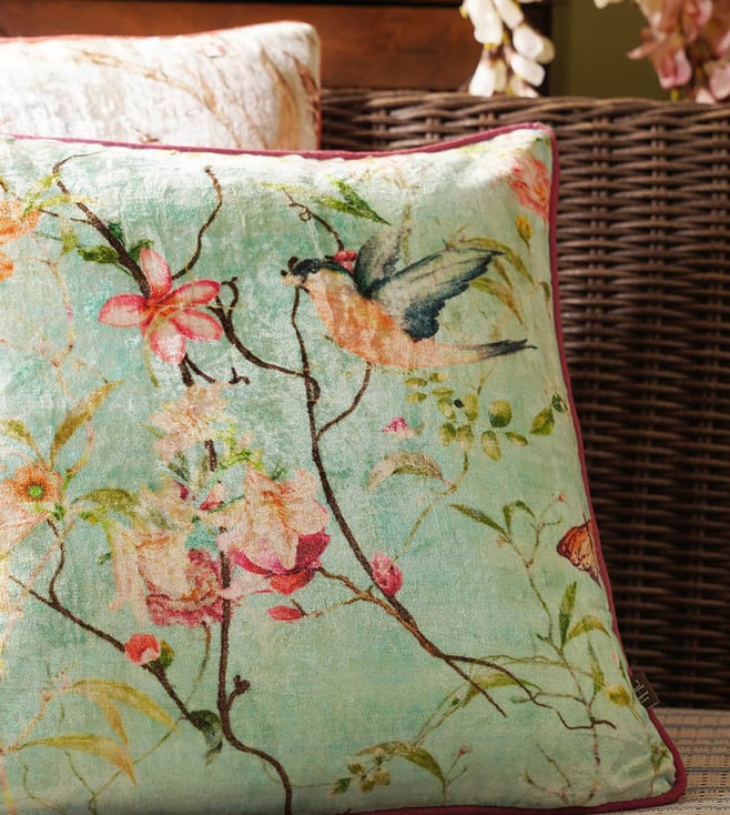 Pure Home and Living Blue Viscose Printed Square Cushion Cover