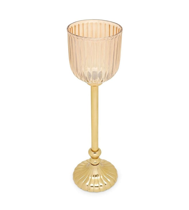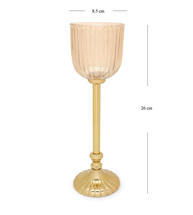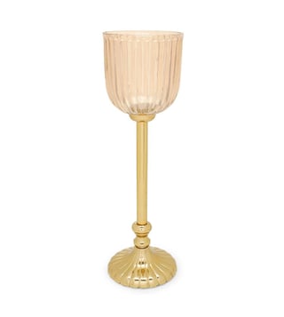 Pure Home and Living Brown & Gold Glass Tall Hurricane Votive With Stand