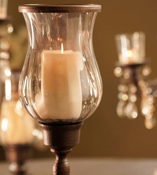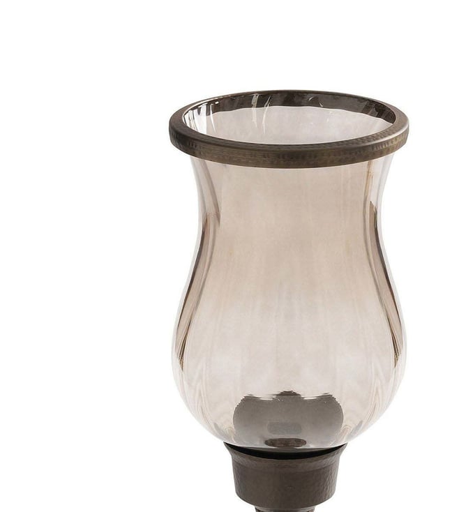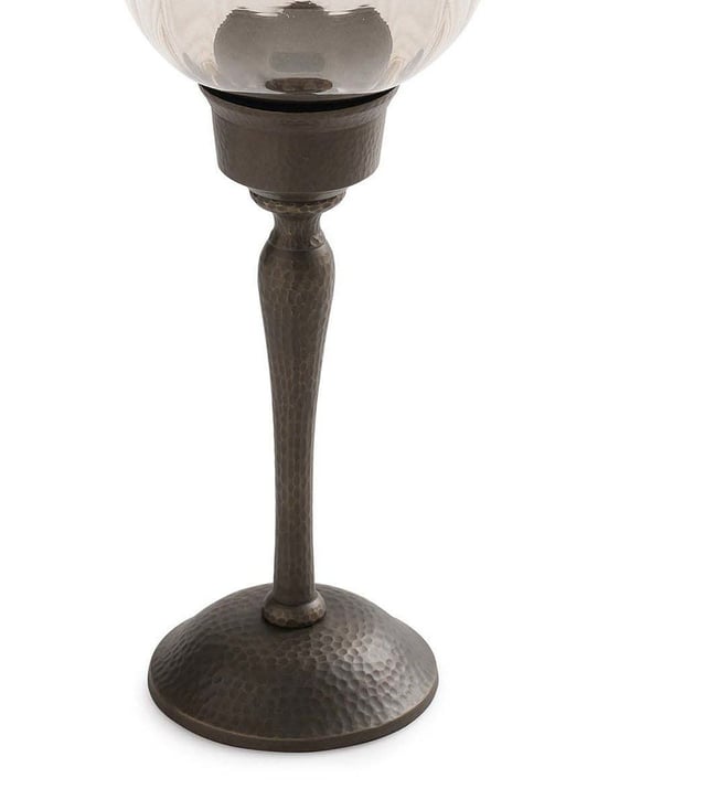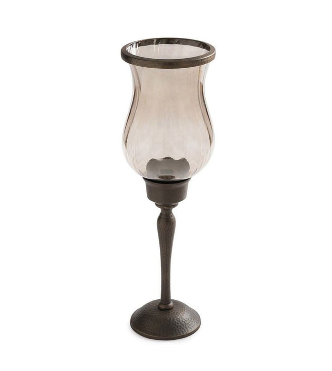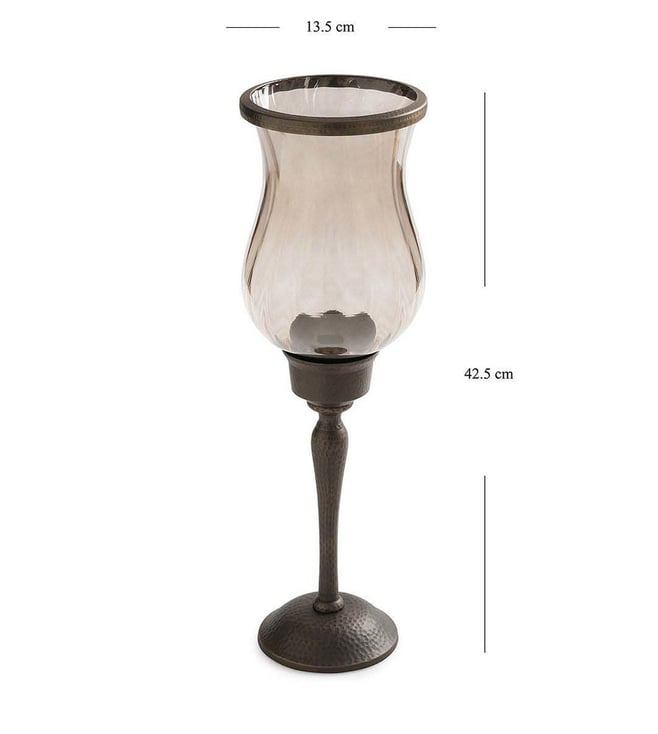 Pure Home and Living Brown Aluminium Antique Finish Candle Holder With Metal Stand