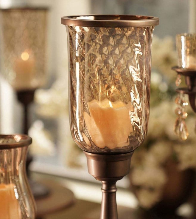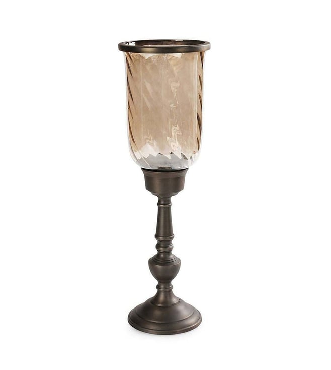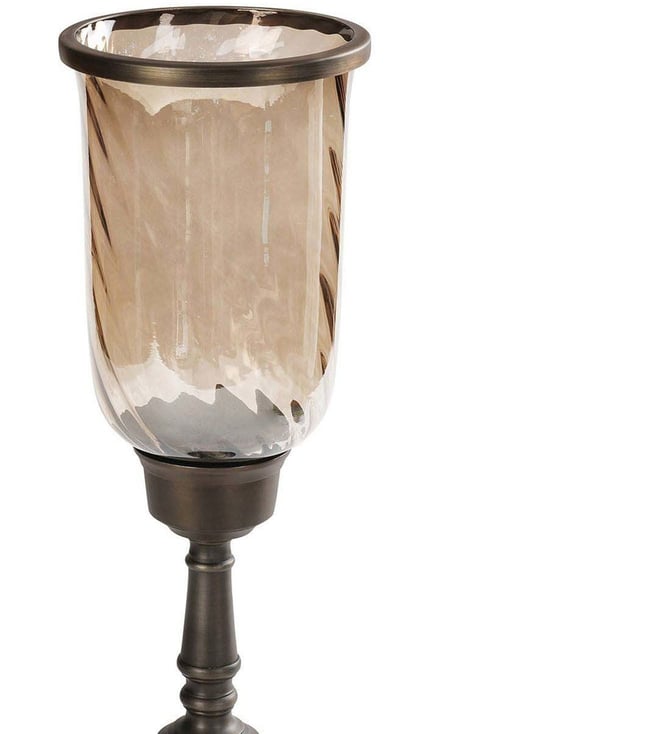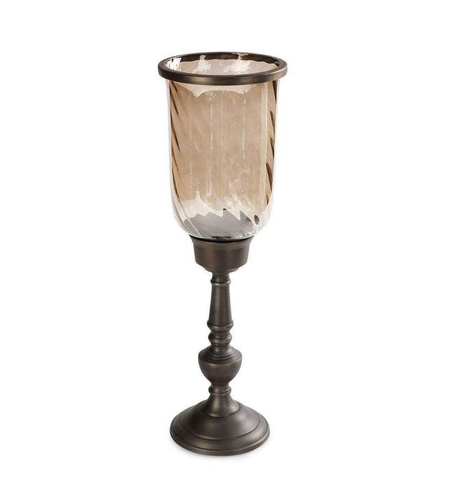 Pure Home and Living Brown Aluminium Antique Finish Candle Holder With Stand