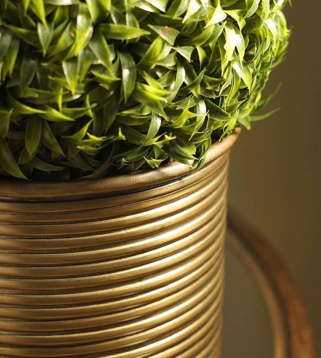 Pure Home and Living Brown Aluminium Antique Finish Ribbed Medium Planter