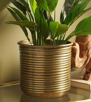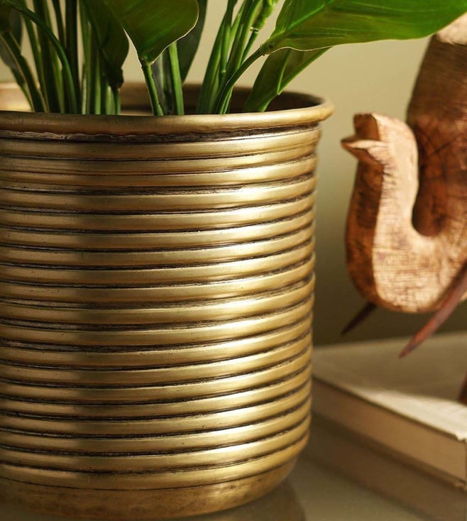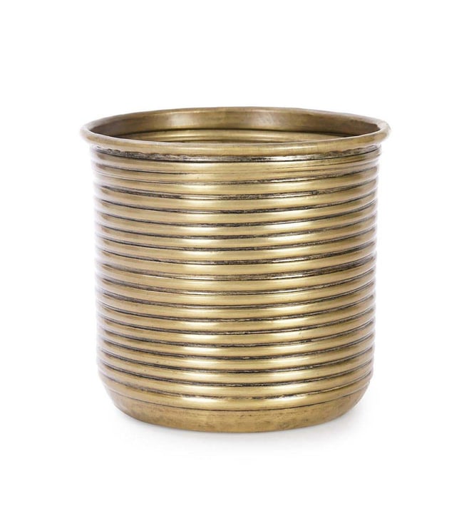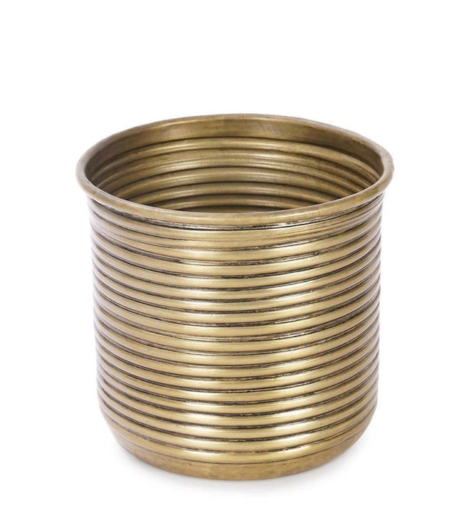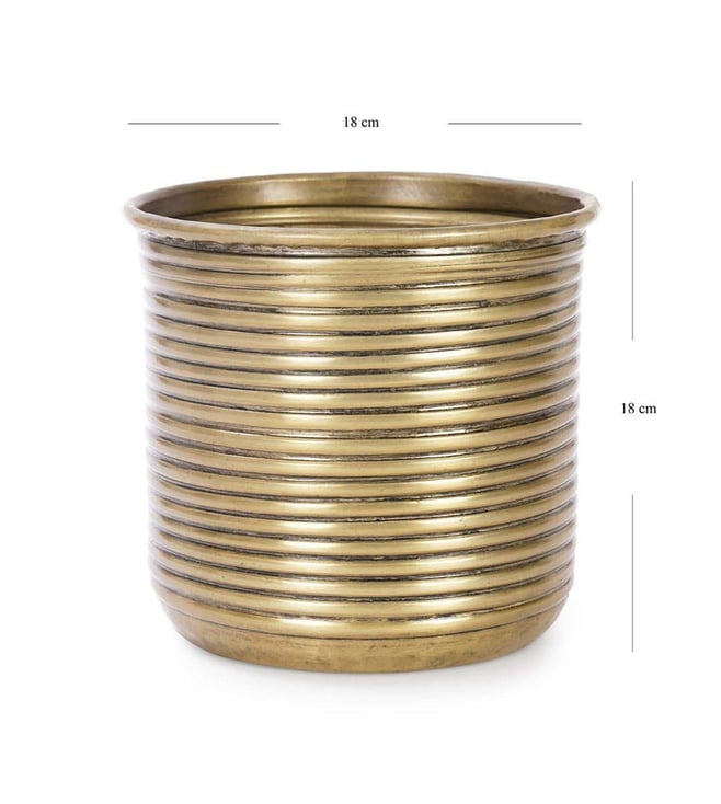 Pure Home and Living Brown Aluminium Antique Finish Ribbed Small Planter