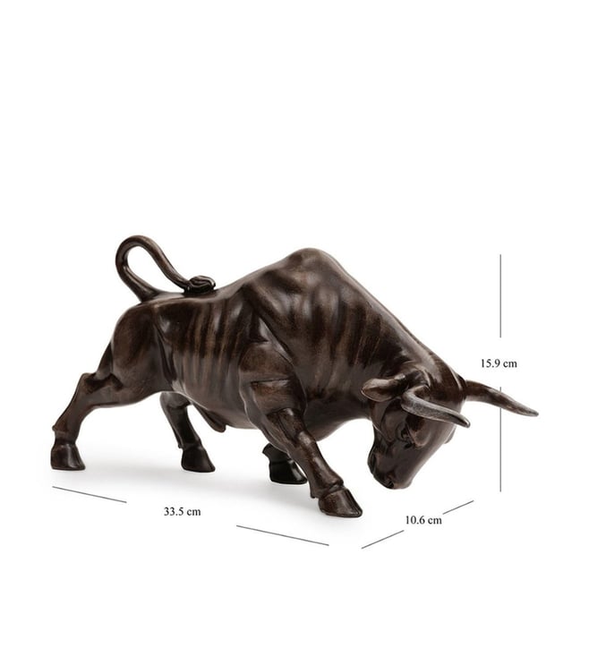 Infuse your space with strength and vitality with the Pure Home and Living Brown Polyresin Wild Bull. This meticulously crafted sculpture showcases a powerful wild bull in mid-charge, capturing the energy and determination of this majestic creature. Made from high-quality polyresin, it features intricate details and a rich brown finish that highlights the bull s muscular form and dynamic presence.