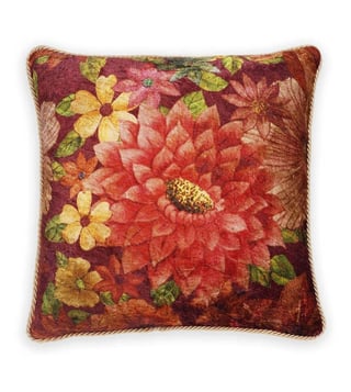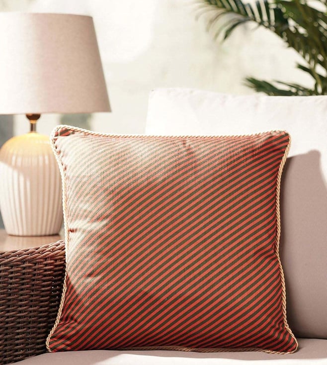 Pure Home and Living Brown Velvet Floral & Stripe Printed Cushion Cover