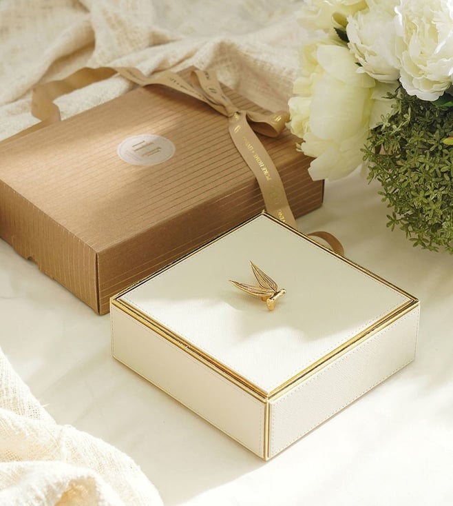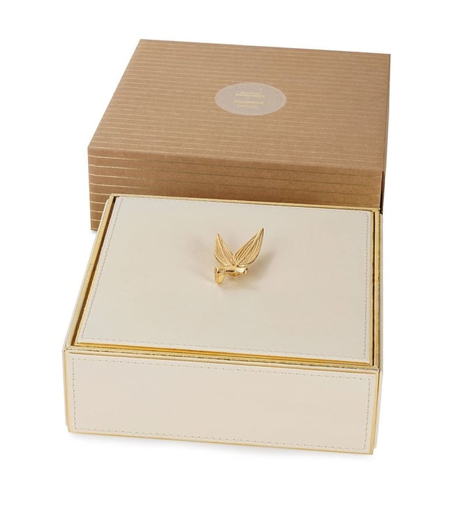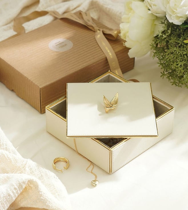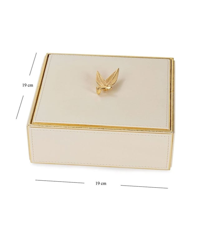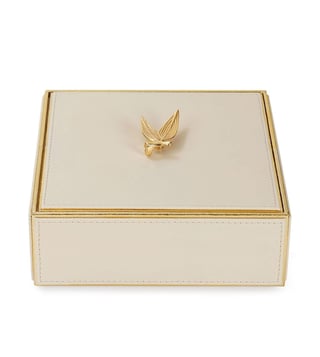 Keep your home organized and stylish with Pure Home and Living Cream Leather Storage Boxes. Crafted from faux leather and metal, perfect for occasions like New Year, Diwali, Mother's Day, Wedding, Birthday, Anniversary.'Disclaimer: All other items in the image are only for display purposes and will not be a part of the delivery content. Product colour may slightly vary due to photographic lighting sources. Country of Origin - India.