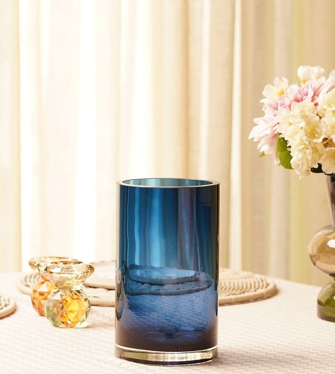 Pure Home and Living Dark Blue Glass Cylindrical Vase (Small)