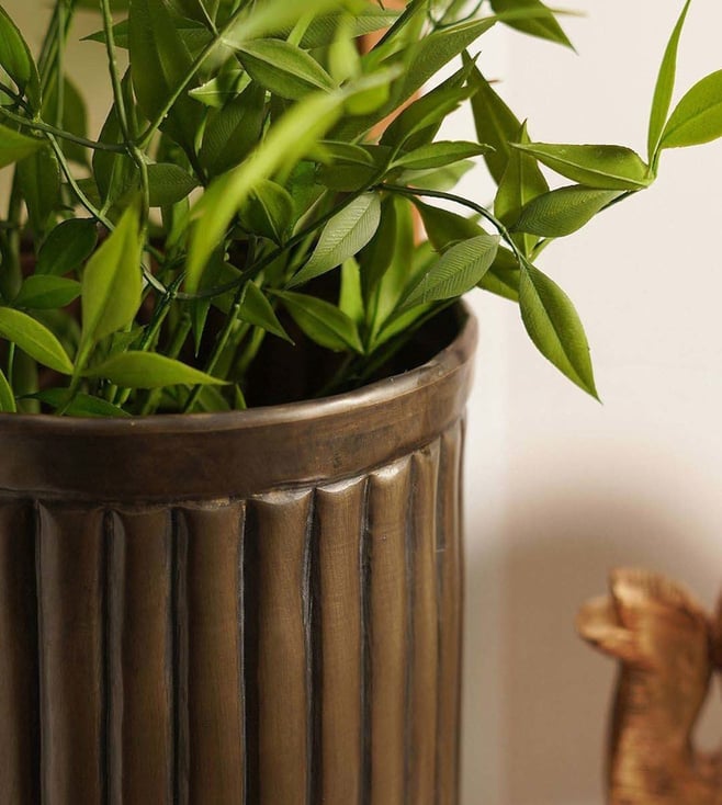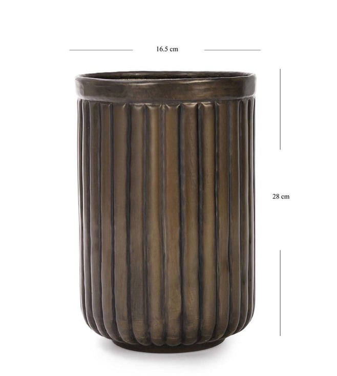 Pure Home and Living Dark Brown Aluminium Ribbed Medium Planter