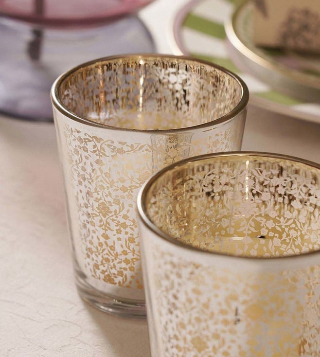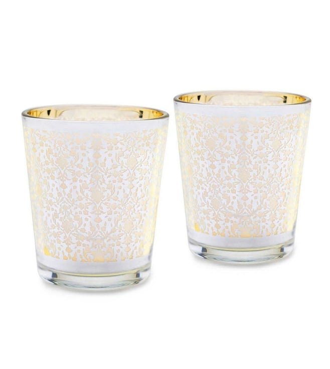 Dress up your table and bookshelves with this set of 2 pearl finish votives - large from Pure Home and Living. Crafted from premium quality glass, it brilliantly captures the beauty and adds an aesthetically pleasing touch to your decor.