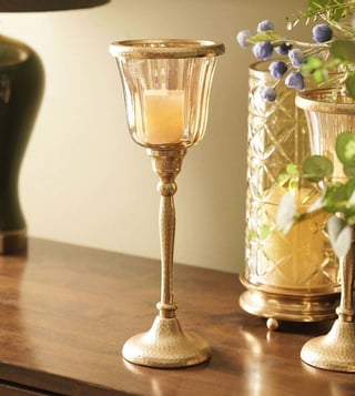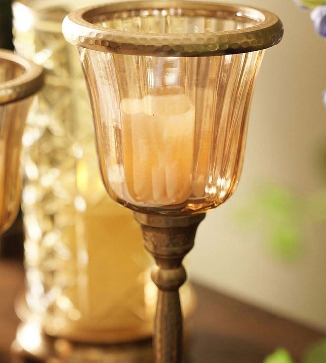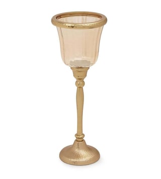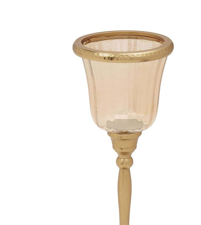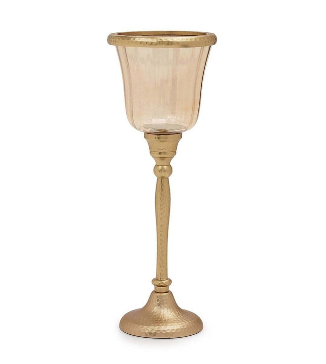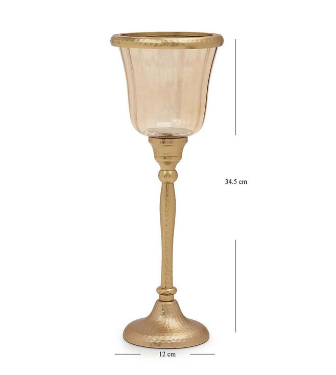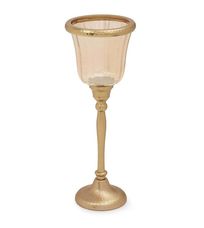Pure Home and Living Gold Aluminium Glass Hammered Hurricane With Base - Large
