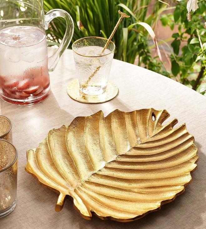 Add a touch of elegance to your home with these Pure Home and Living Gold Aluminum Textured Decorative Platters. Perfect for any occasion, these platters are made from high-quality aluminum and come in a beautiful gold color. Upgrade your home decor with these stunning platters from Pure Home and Living.' Disclaimer: All other items in the image are only for display purposes and will not be a part of the delivery content. Product colour may slightly vary due to photographic lighting sources. Country of Origin - India.