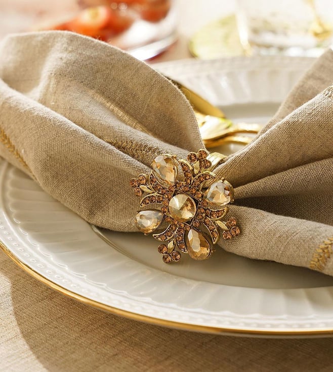 Pure Home and Living Gold Brass Embellished Napkin Rings