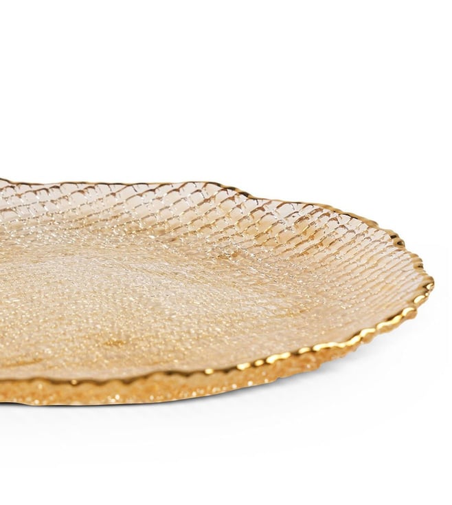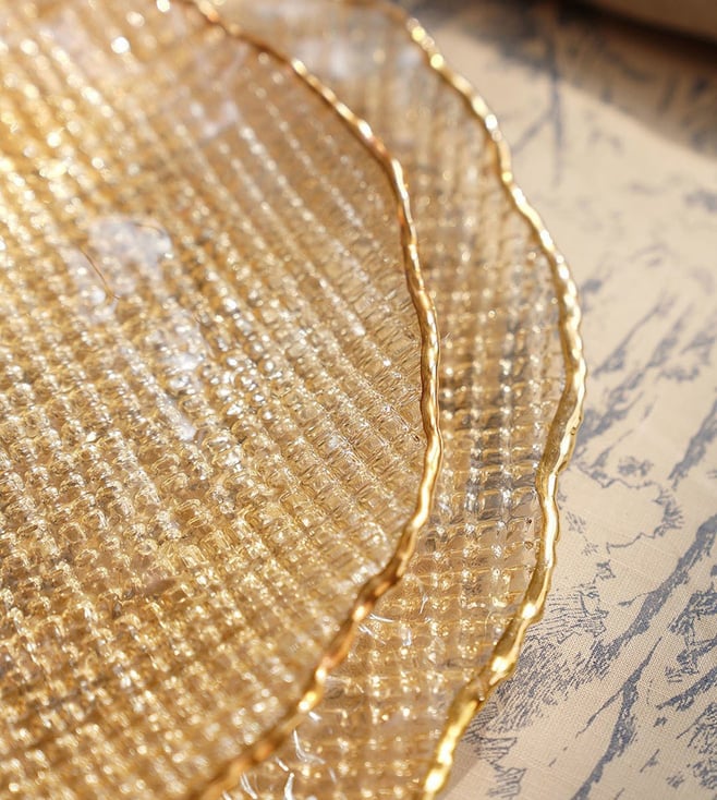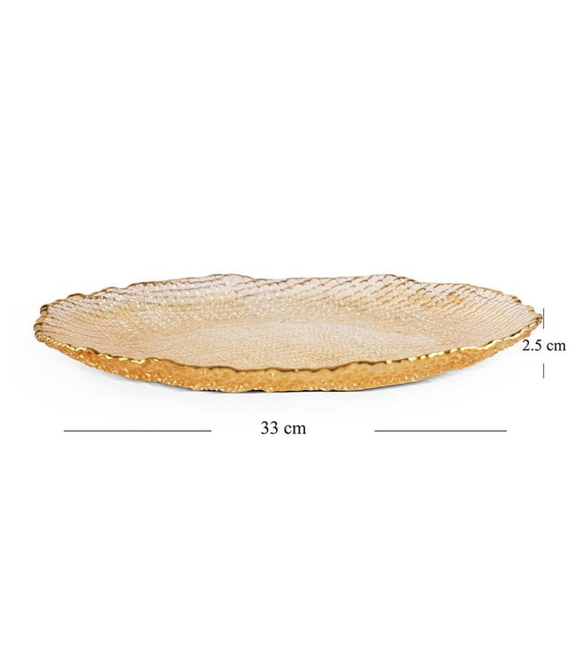Add a touch of elegance to your celebrations with Pure Home and Living Gold Glass Dessert Plates. Perfect for special occasions such as New Year, Diwali, Mother's Day, weddings, birthdays, and anniversaries.'Disclaimer: All other items in the image are only for display purposes and will not be a part of the delivery content. Product colour may slightly vary due to photographic lighting sources. Country of Origin - India.