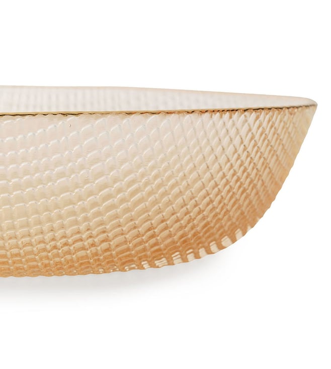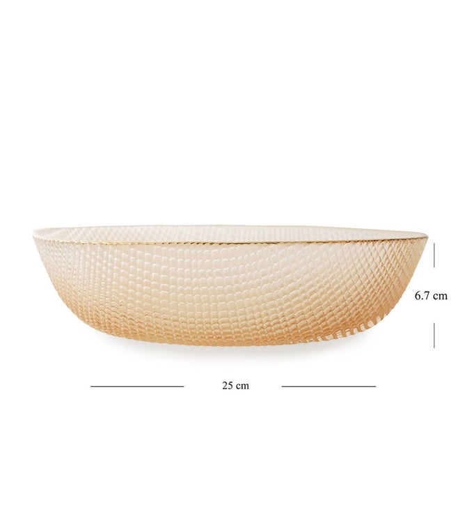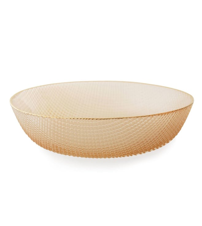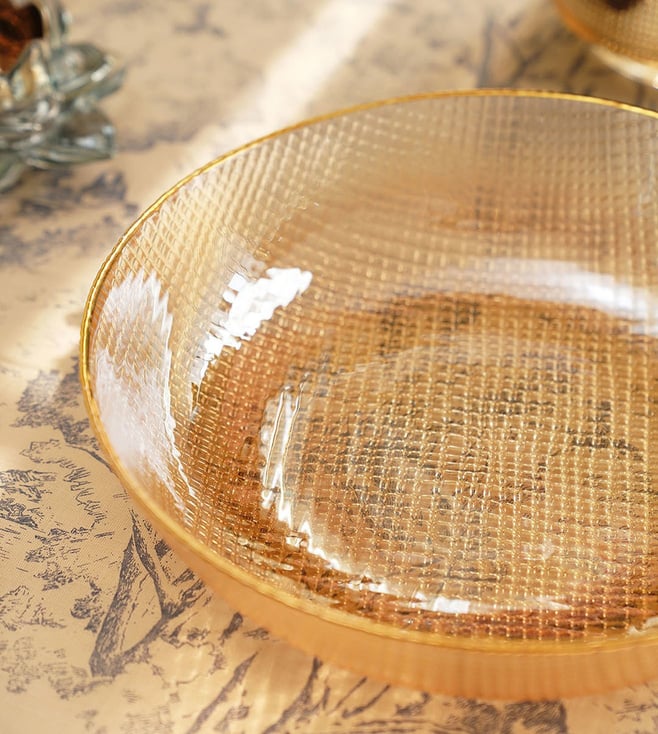 Serve in style with Pure Home and Living's elegant Gold Glass Bowls. Perfect for special occasions like New Year, Diwali & weddings. Buy now!'Disclaimer: All other items in the image are only for display purposes and will not be a part of the delivery content. Product colour may slightly vary due to photographic lighting sources. Country of Origin - India.