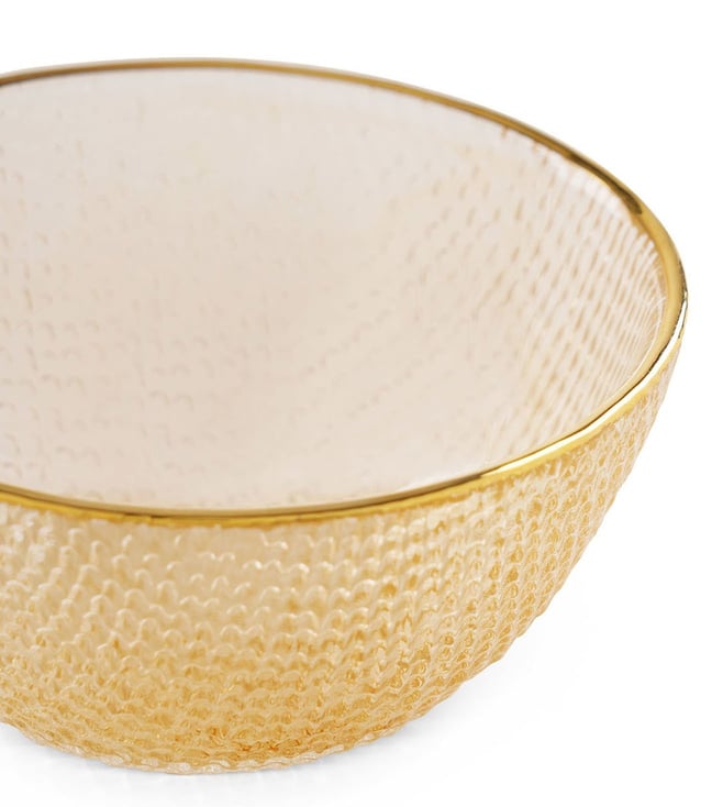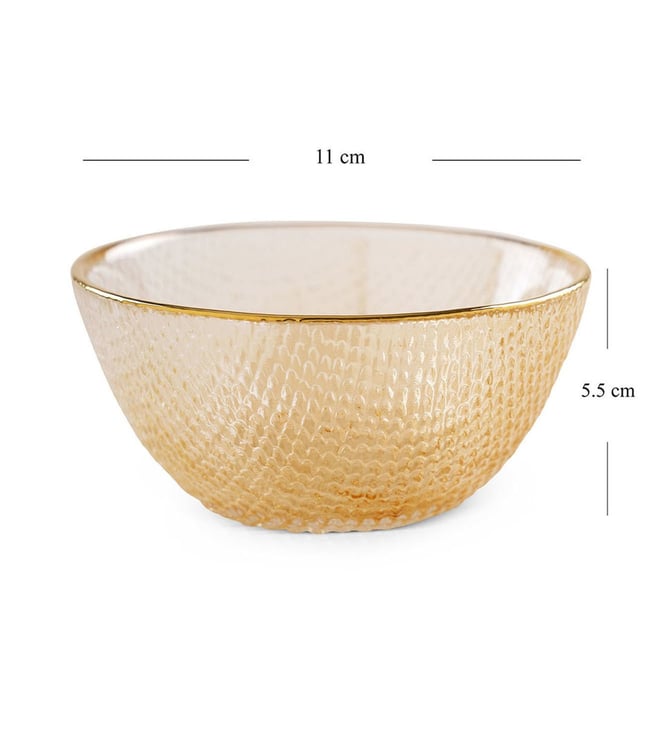 Serve your guests in style with the Pure Home and Living Gold Glass Side Bowls. Perfect for special occasions like New Year, Diwali, Mother's Day, Weddings, Birthdays, and Anniversaries. Elegant, practical, and available in a stunning gold color. Get yours today!'Disclaimer: All other items in the image are only for display purposes and will not be a part of the delivery content. Product colour may slightly vary due to photographic lighting sources. Country of Origin - India.