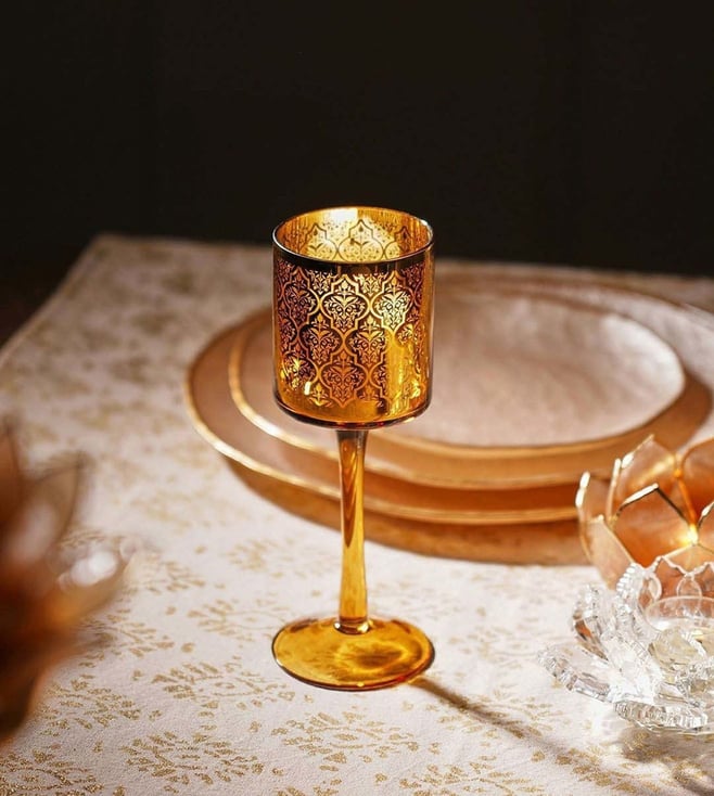 Pure Home and Living Gold Glass Stem Candle Holder