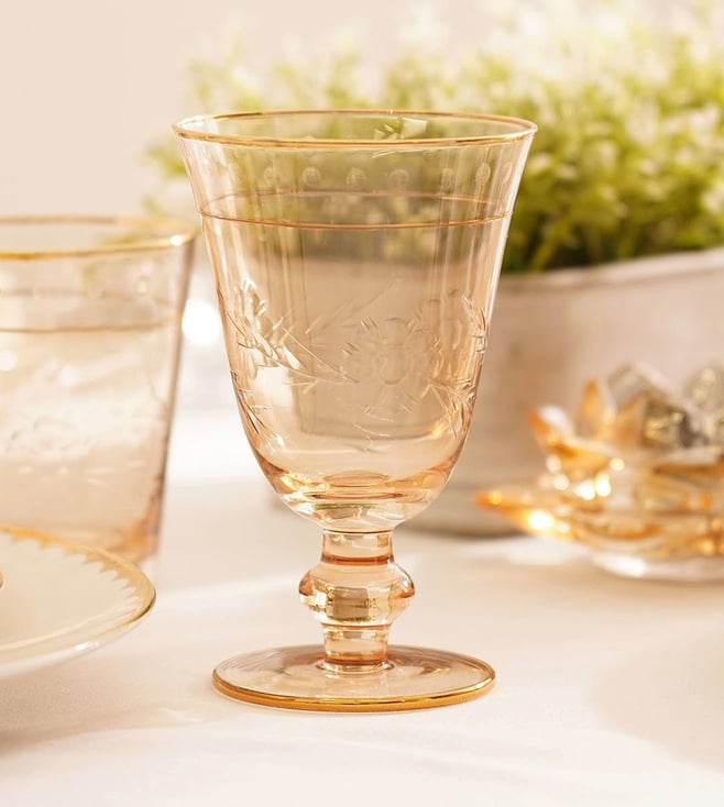 Get ready to impress your guests with Pure Home and Living's Gold Glass Wine Glasses. Perfect for New Year, Weddings and more.'Disclaimer: All other items in the image are only for display purposes and will not be a part of the delivery content. Product colour may slightly vary due to photographic lighting sources. Country of Origin - India.