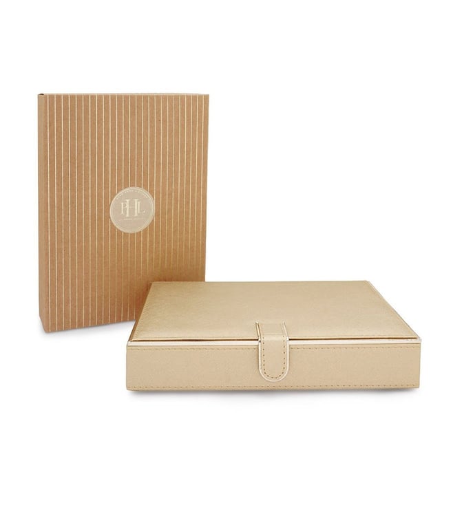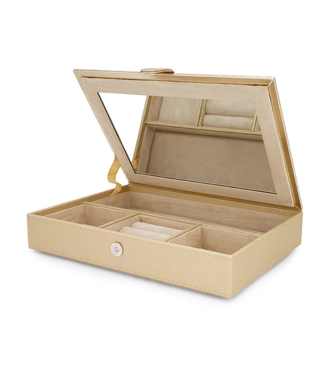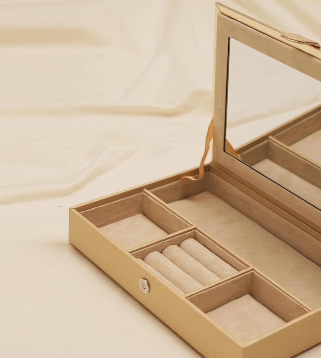 Organize your jewels in style with Pure Home and Living's Gold MDF Jewellery Organiser. Made with MDF, faux leather, glass, magnet, metal and suede fabric, it's perfect for your home.' Disclaimer: All other items in the image are only for display purposes and will not be a part of the delivery content. Product colour may slightly vary due to photographic lighting sources. Country of Origin - India.
