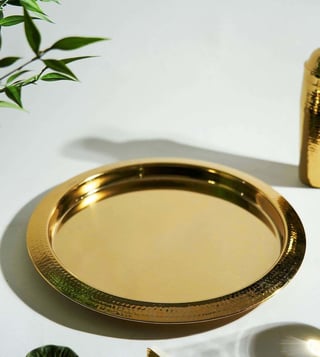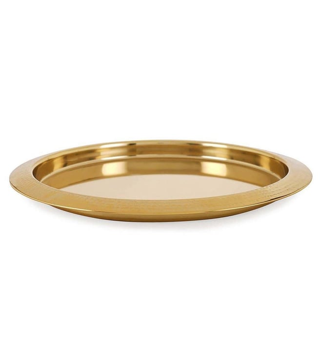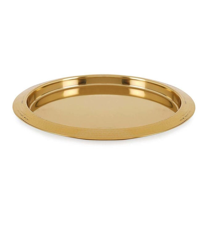 Pure Home and Living Gold Stainless Steel Hammered Round Tray