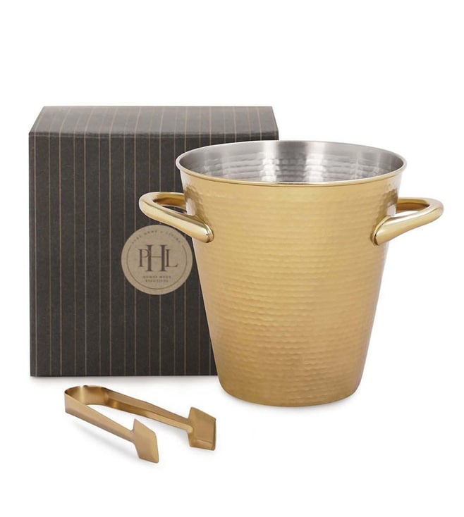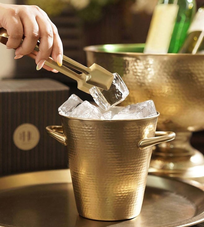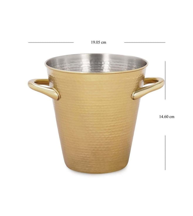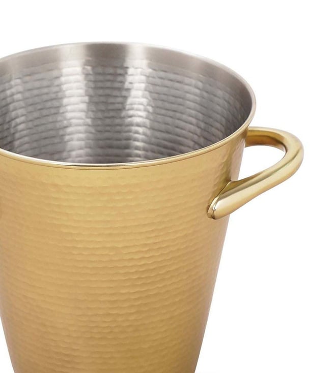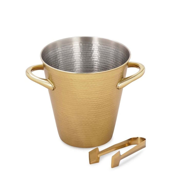 Pure Home and Living Gold Stainless Steel Matt Finish Hammered Ice Bucket With Tong