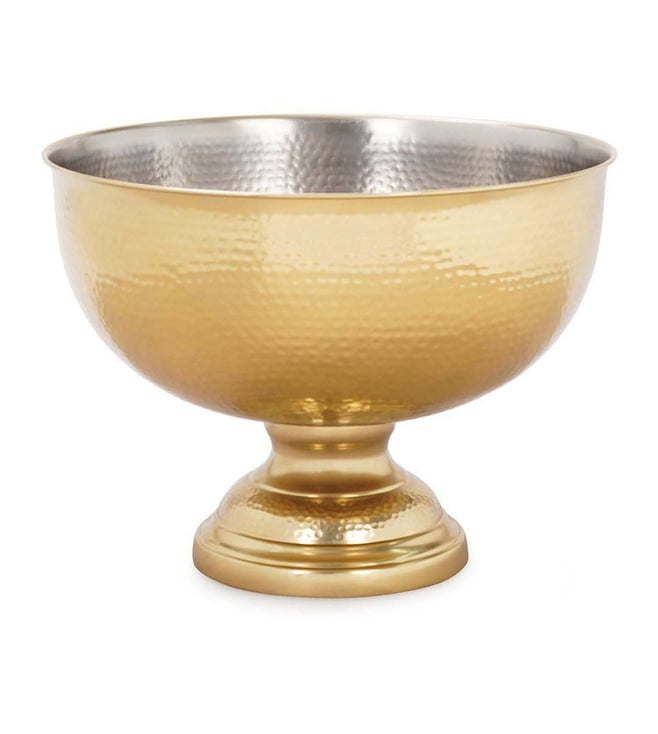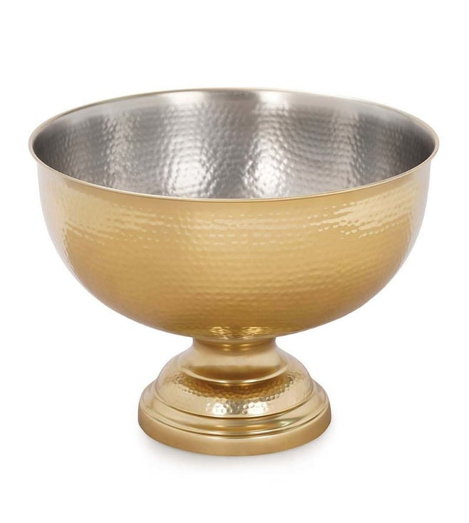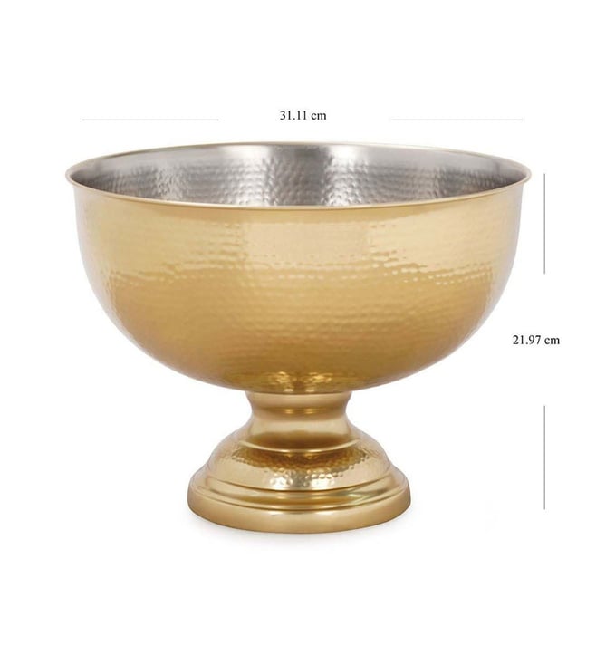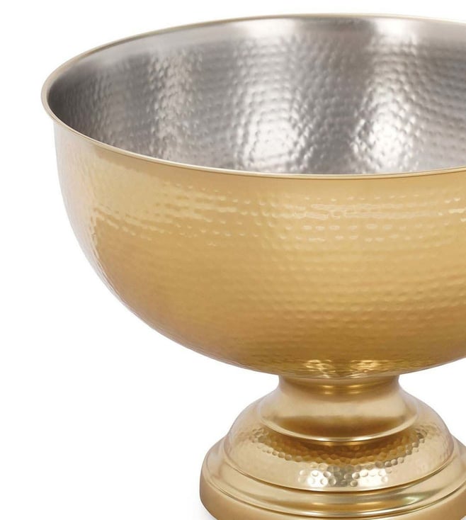 Pure Home and Living Gold Stainless Steel Matt Finish Hammered Punch Bowl