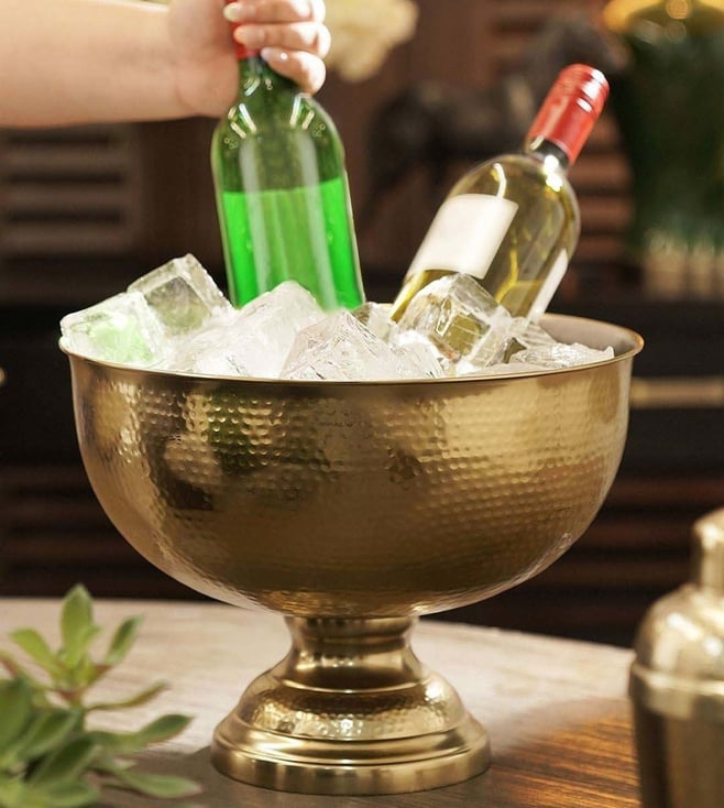 Lend a touch of glamour to your at-home bar set up with this stunning set of 1 matt finish hammered punch bowl from Pure Home and Living. It features hammered detail and made with impeccable quality and exceptional finish. It is crated from stainless steel.