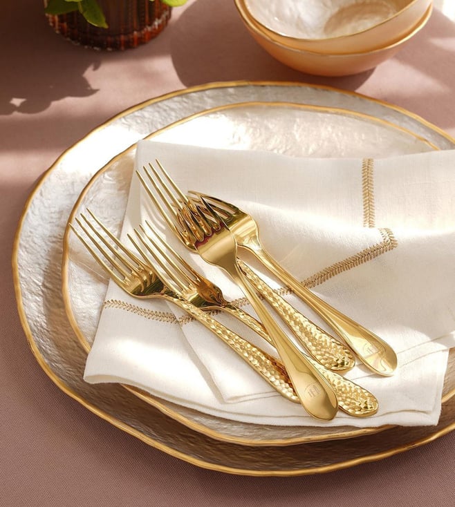 Pure Home and Living Gold Stainless Steel Textured Cutlery sets