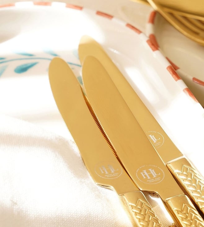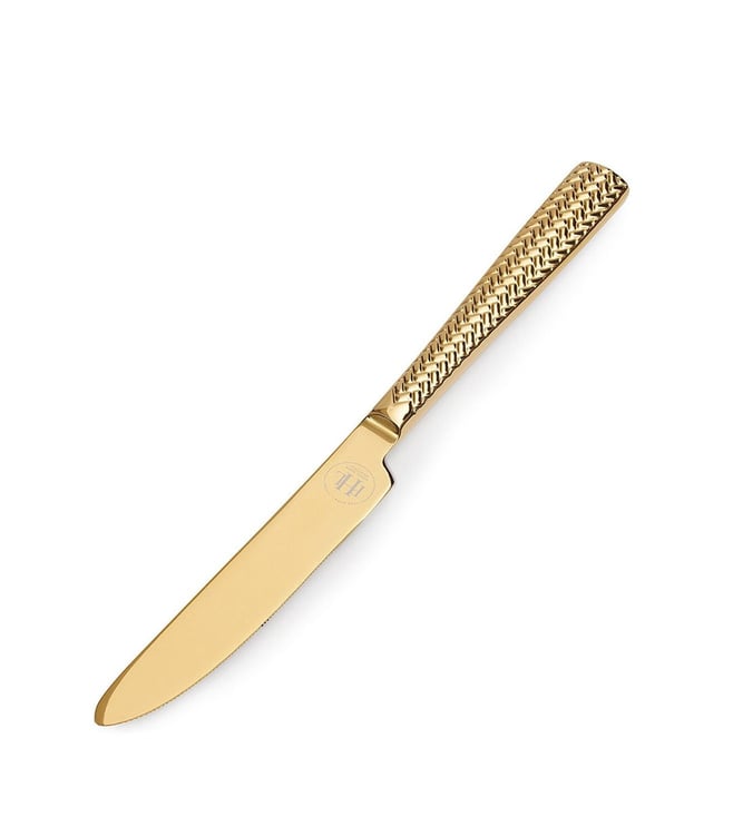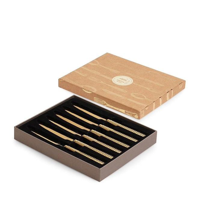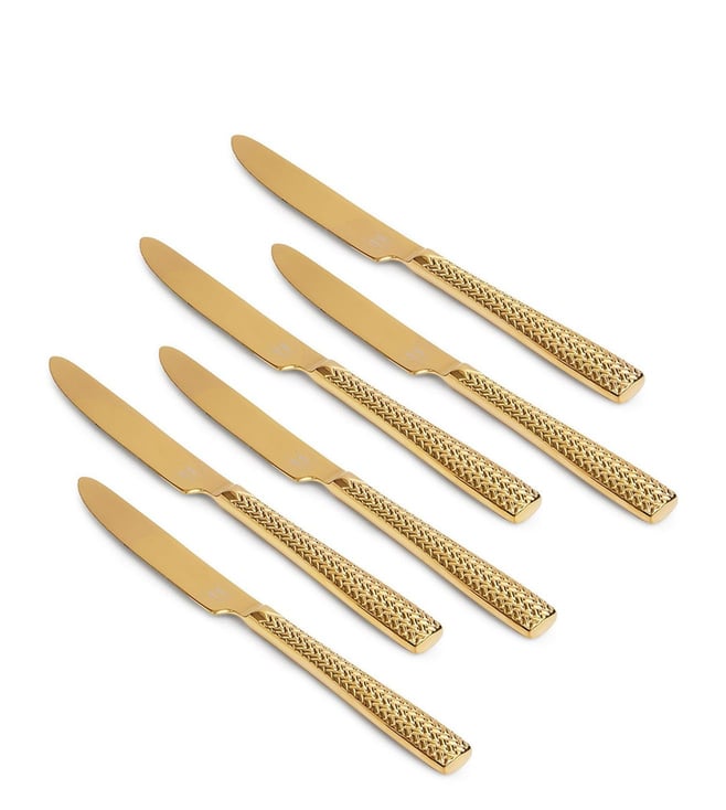 Pure Home and Living Gold Stainless Steel Zig Zag Textured Dessert Knives - Set of 6