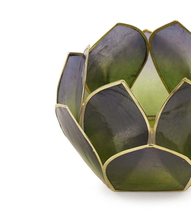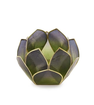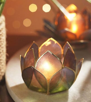 Illuminate your space with a touch of class in this set of 1 12 petals capiz tealight holder from Pure Home and Living. Inspired by a lotus, this tea light holder features twelve translucent capes shell petals. It is crafted from metal.