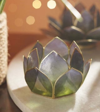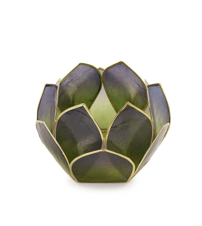 Pure Home and Living Green & Blue Ombre Metal 12 Petals Capiz Tealight Holder