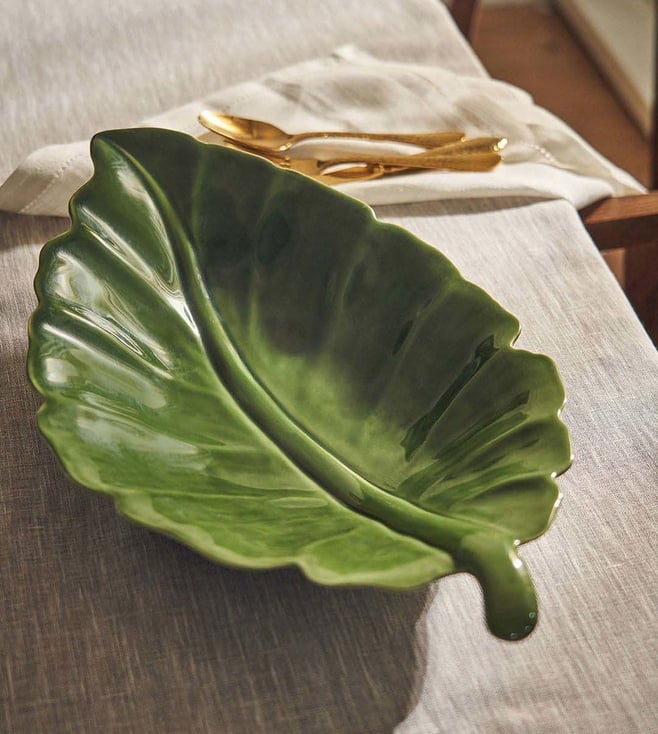 Pure Home and Living Green Ceramic Petilil Leaf Plate