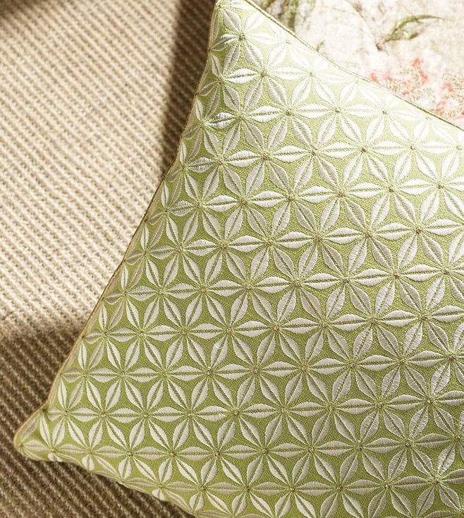 Pure Home and Living Green Cotton Embroidery Cushion Cover