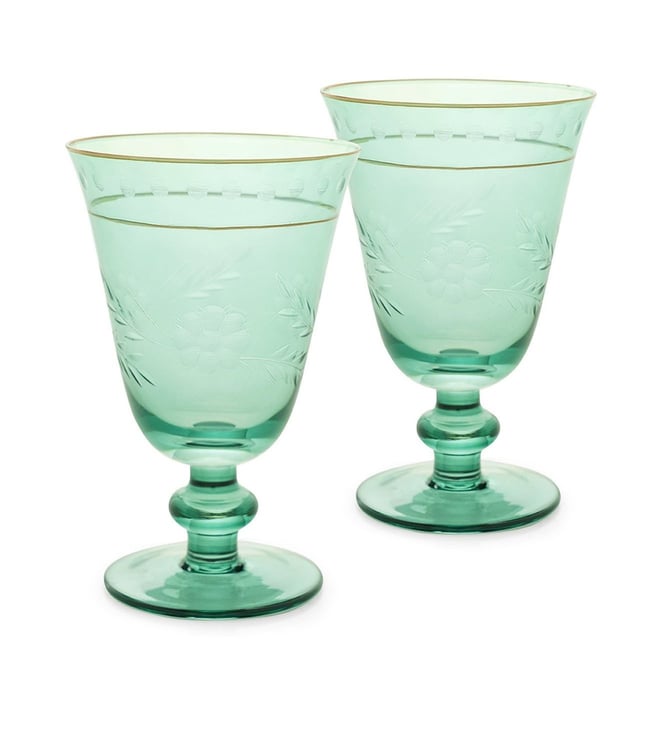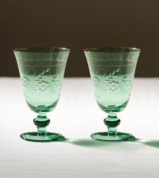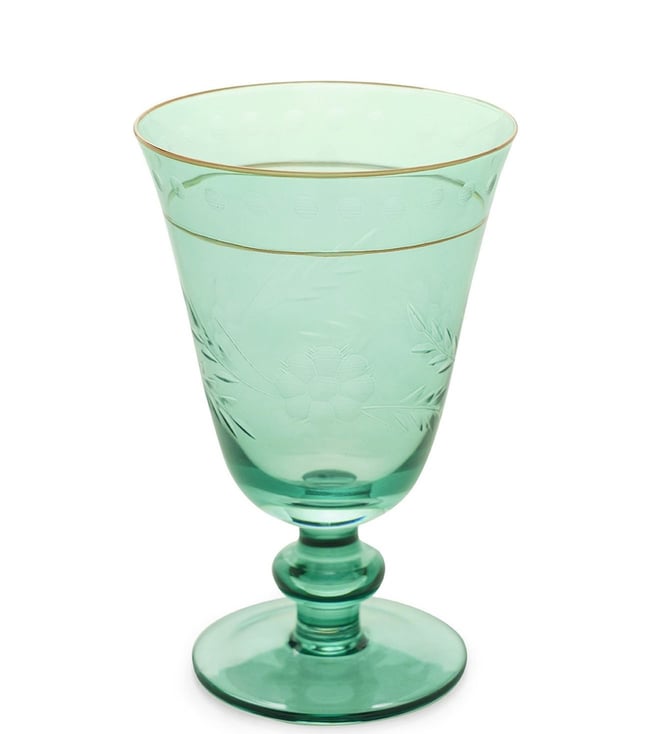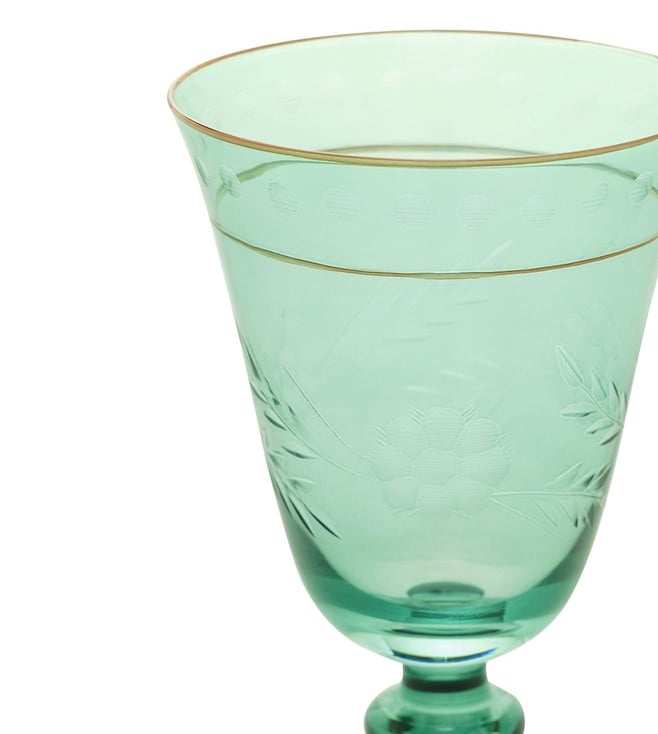 Pure Home and Living Green Glass Floral Wine Glasses