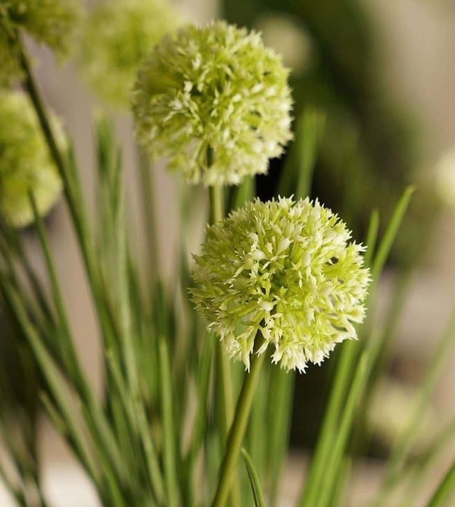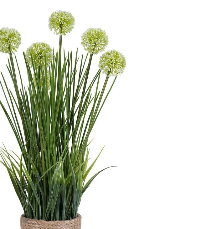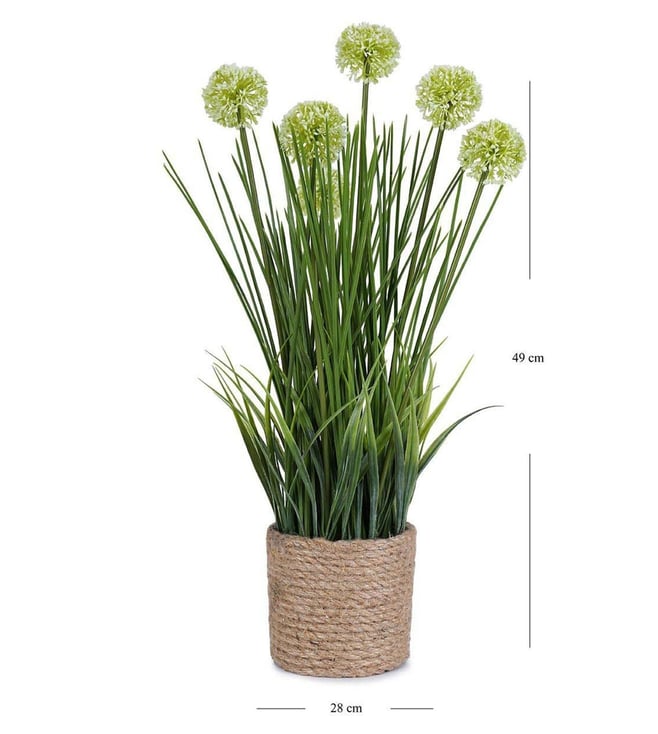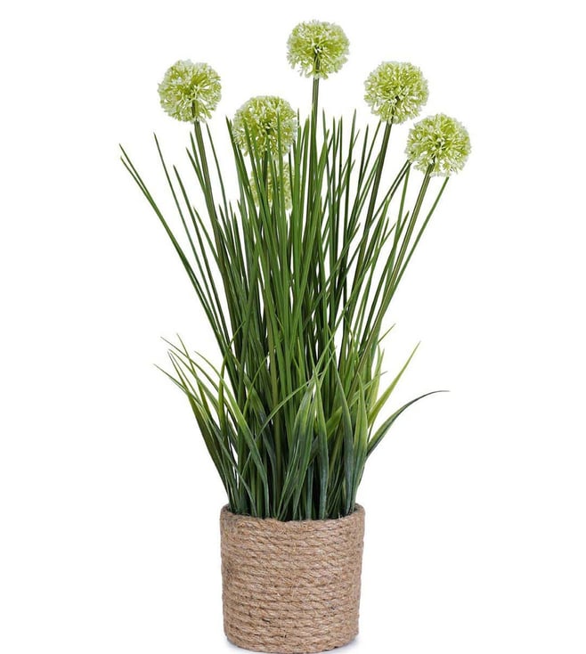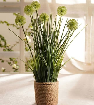 Pure Home and Living Green Plastic Artificial Onion Flower With Rattan Basket