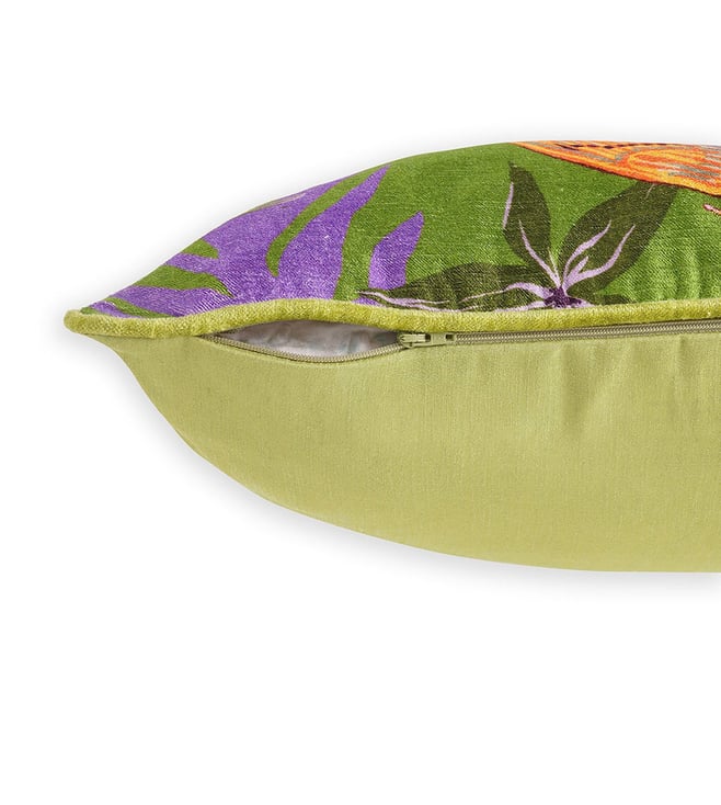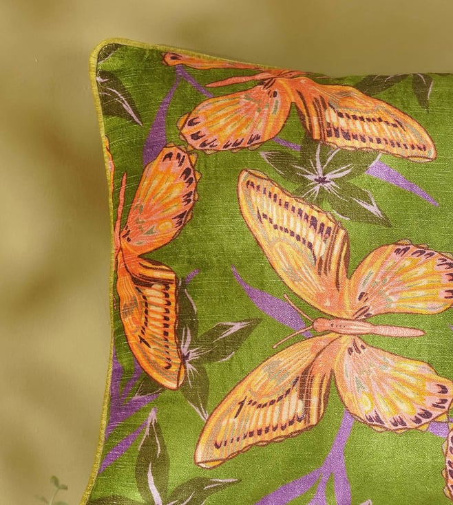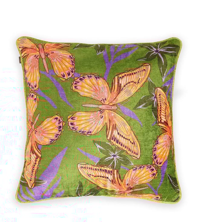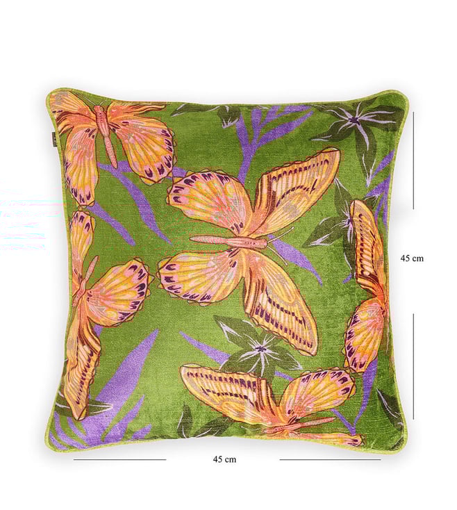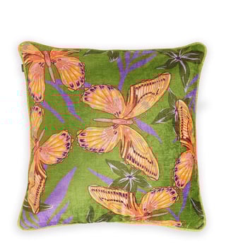 Pure Home and Living Green Velvet Butterfly Print Cushion Cover