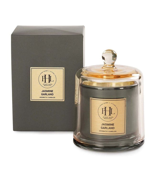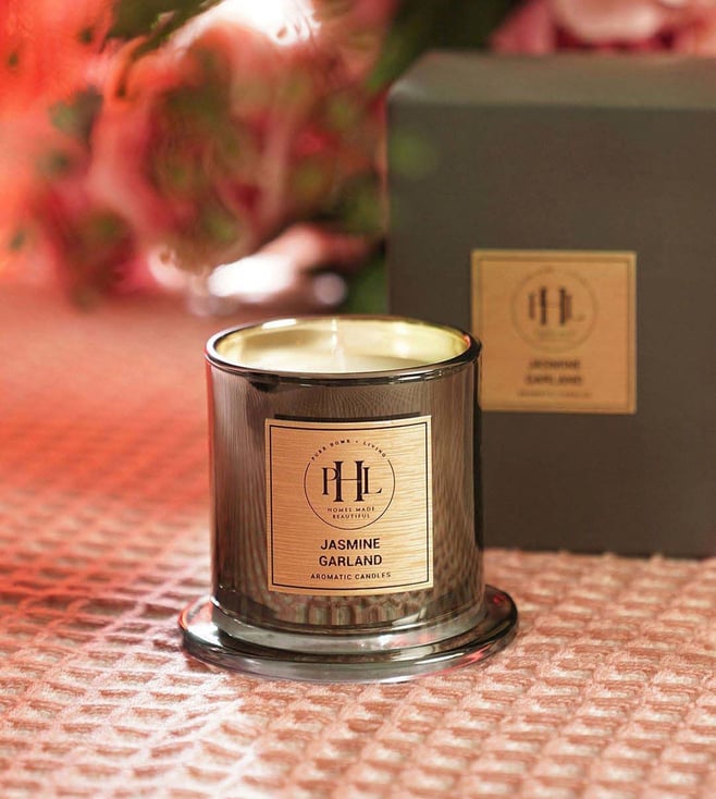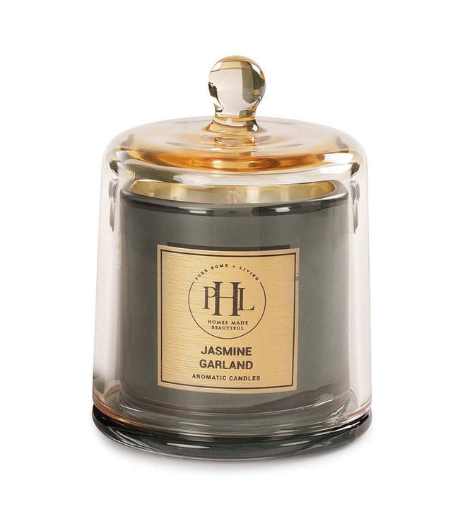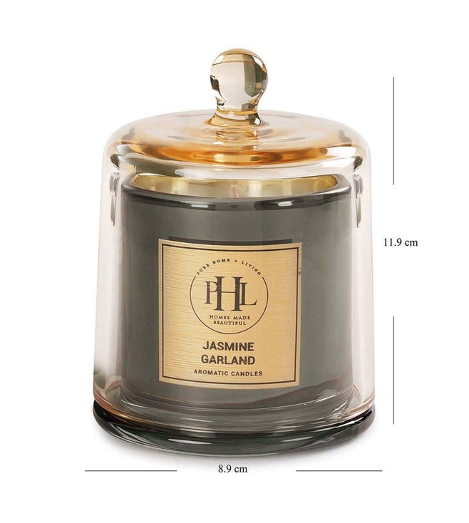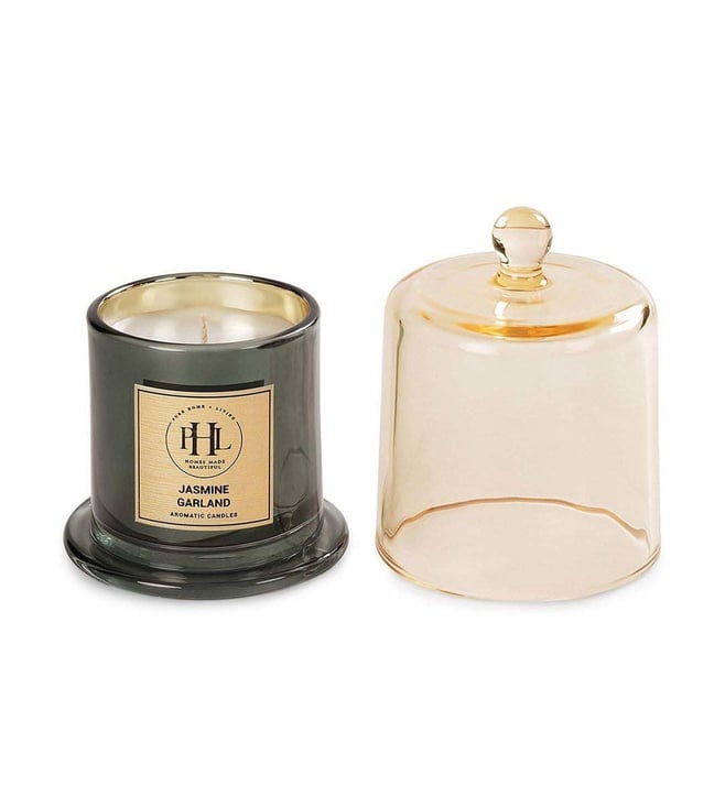 Lend your home a sweet and intoxicating fragrance with this jasmine garland scented candle with cloche from Pure Home and Living. It is designed in a sturdy and sophisticated glass jar. This candle will add an enchanting fragrance that will transform any room into a tranquil haven.