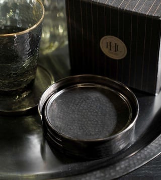 Pure Home and Living Grey Stainless Steel Matt Finish Hammered Coasters With Stand - Set of 4
