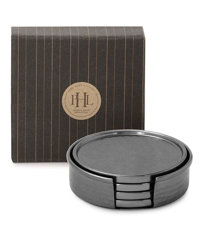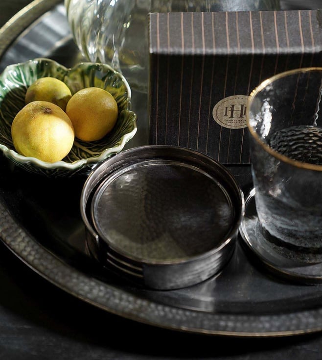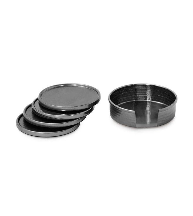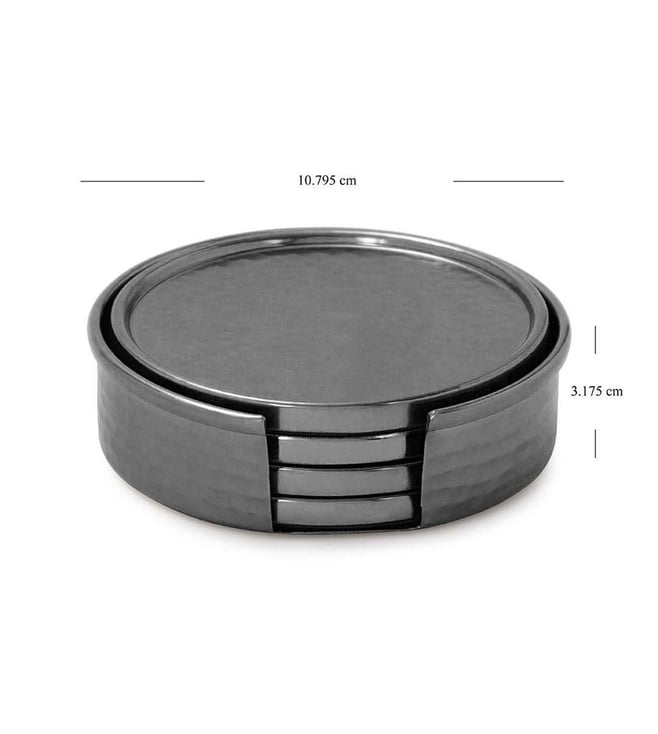 Enhance your table with this set of 4 matt finish hammered coasters with stand from Pure Home and Living. It features hammered detail and made with impeccable quality and exceptional finish. It is crated with care using premium-quality stainless steel.