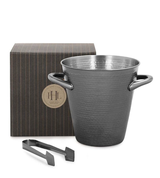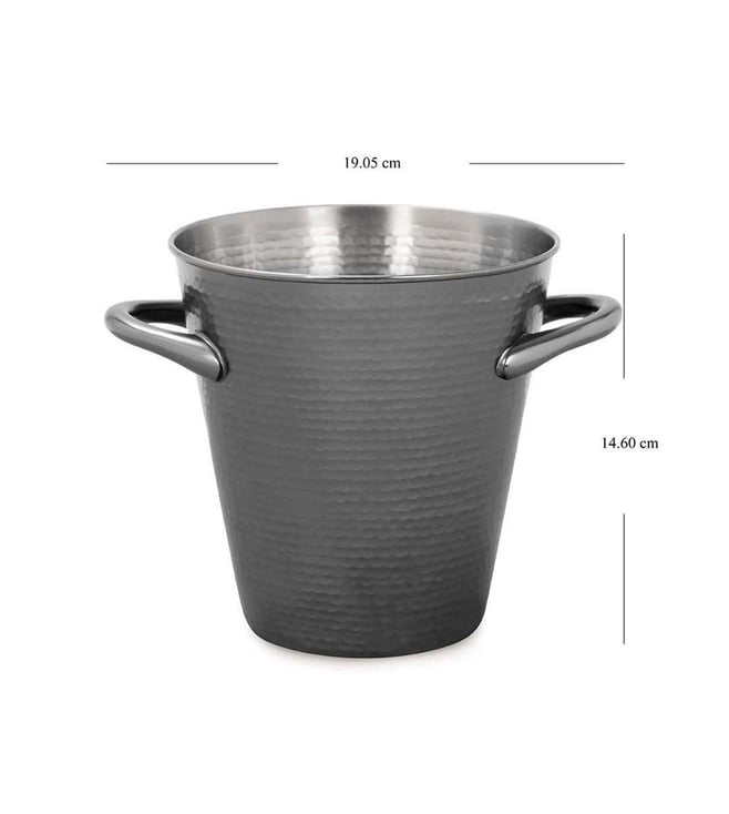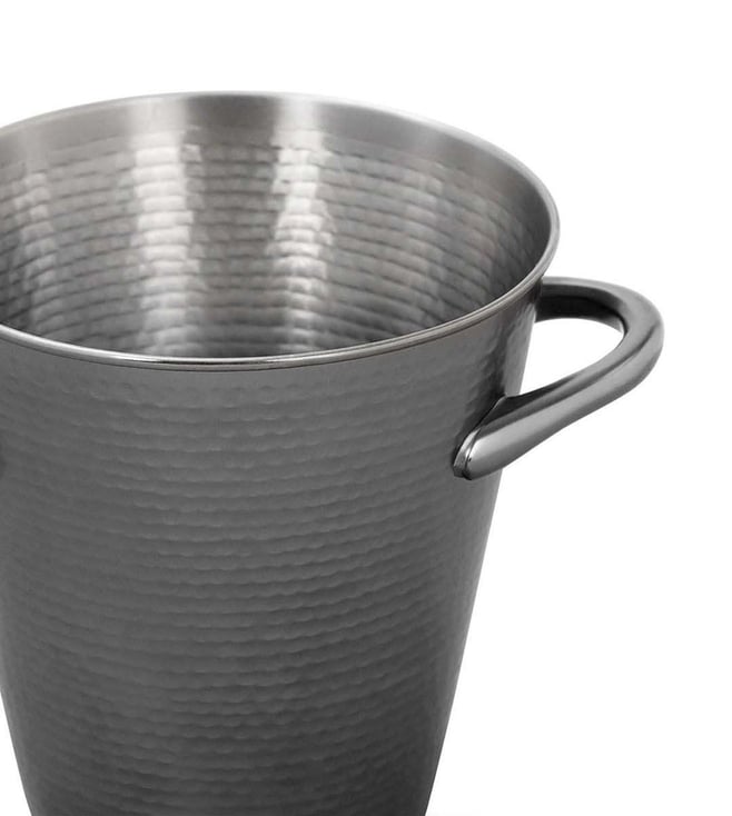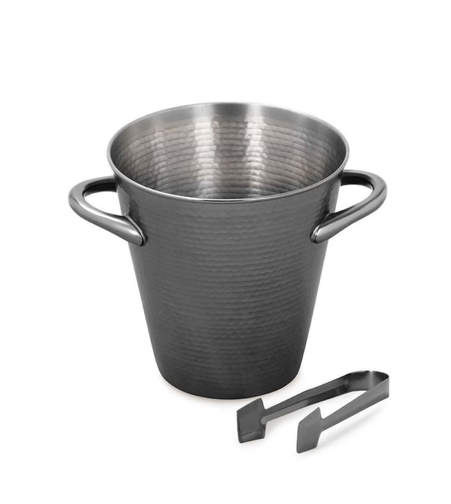 Pure Home and Living Grey Stainless Steel Matt Finish Hammered Ice Bucket With Tong