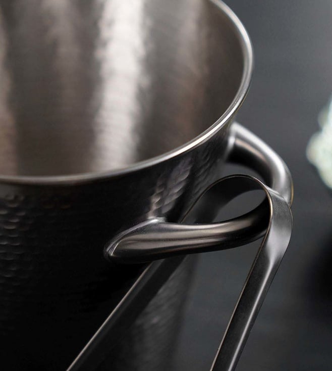 Serve ice in style with this set of 1 matt finish hammered ice bucket with tong from Pure Home and Living, exuding understated luxury and sophistication. It features hammered detail and made with impeccable quality and exceptional finish. It is crated from stainless steel.