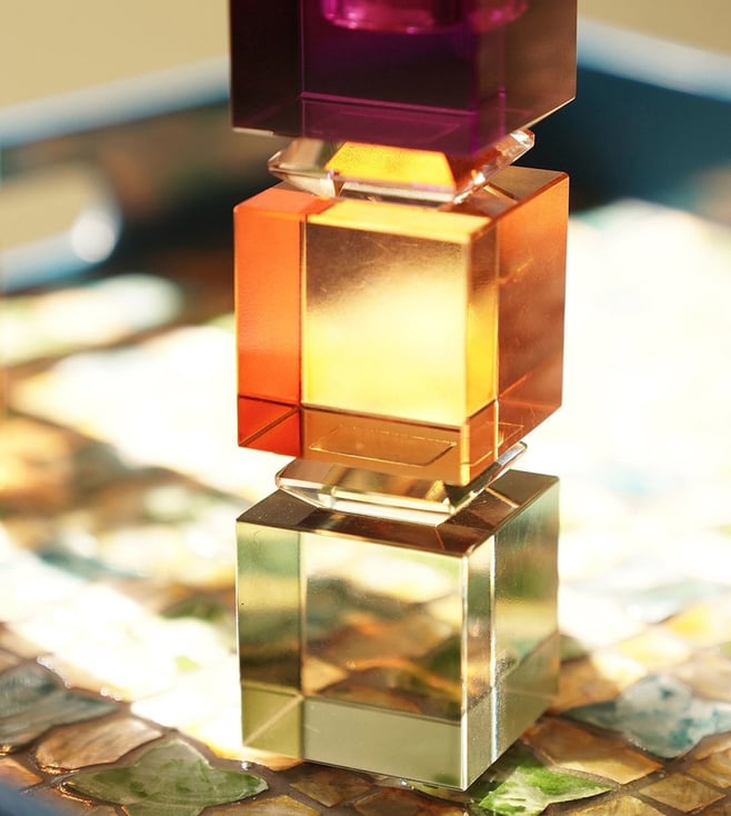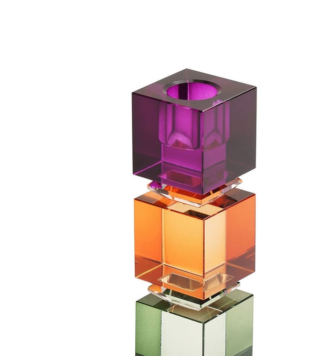 Pure Home and Living Multicolor 3 Tone Cut Glass Square Candle Holder